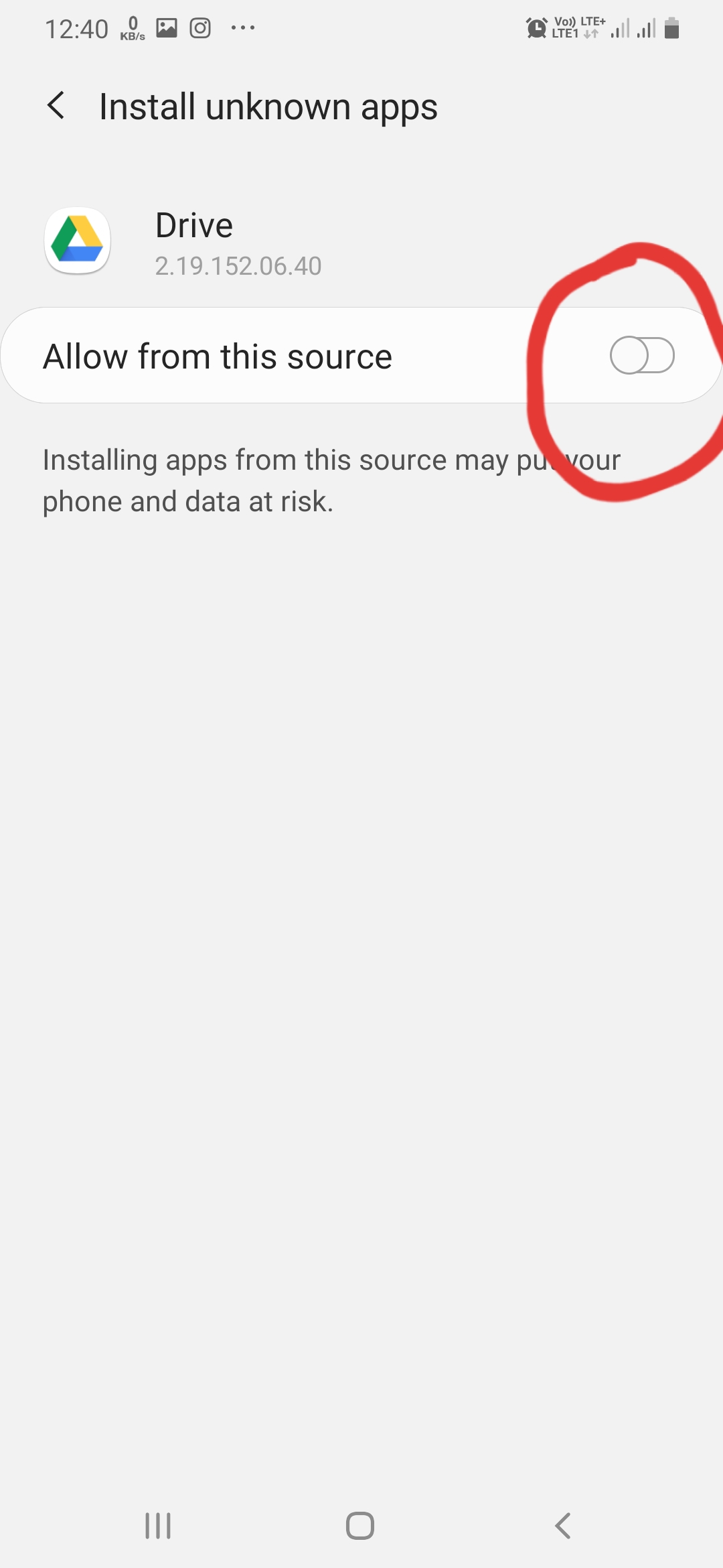 3) ફોટોમાં બતાવ્યા પ્રમાણે લાલ કલરનુ ગોળ છે ત્યાં દર્શાવેલ બટન Allow એટલે કે જમણી બાજુ ખસેડો અને Back બટન દબાવીને પાછા જાઓ.